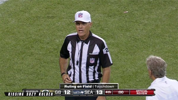The boiling point of “Ref-gate” (yep…I went there) happened during the Monday Night game in Seattle. Aaron Rodgers had spent more time on his back than the entire Kardashian family after the Seahawks beat him down for eight first half sacks. Green Bay took a five point lead with about nine minutes left but couldn’t run out the clock at the end. Seattle had a shot with 46 seconds left.